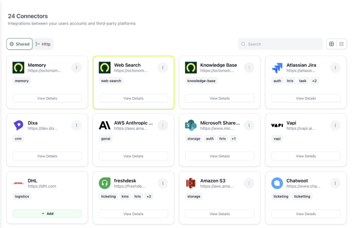 Connectors. Ein Connector ermöglicht es Ihrem Oktonomy-Agenten, mit anderen Plattformen und Diensten zu kommunizieren.